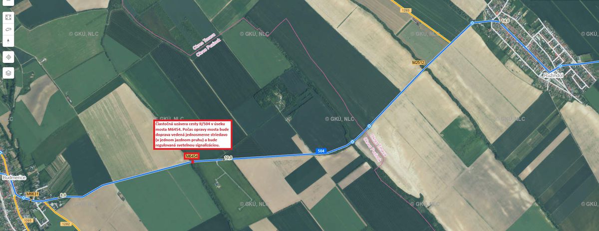 Správa ciest Bratislavského samosprávneho kraja začala s opravou mosta M6454 v extraviláne na ceste II/504 medzi obcami Budmerice a Ružindol. Stavebné práce sa realizujú počas čiastočnej uzávery. Most sa bude opravovať v dvoch etapách tak, aby bol zabezpečený nepretržitý prejazd vozidiel v opravovanom úseku. Doprava je presmerovaná do jedného zúženého jazdného pruhu. Vedená je striedavo jednosmerne a regulovaná je dočasným dopravným značením a svetelnou signalizáciou.