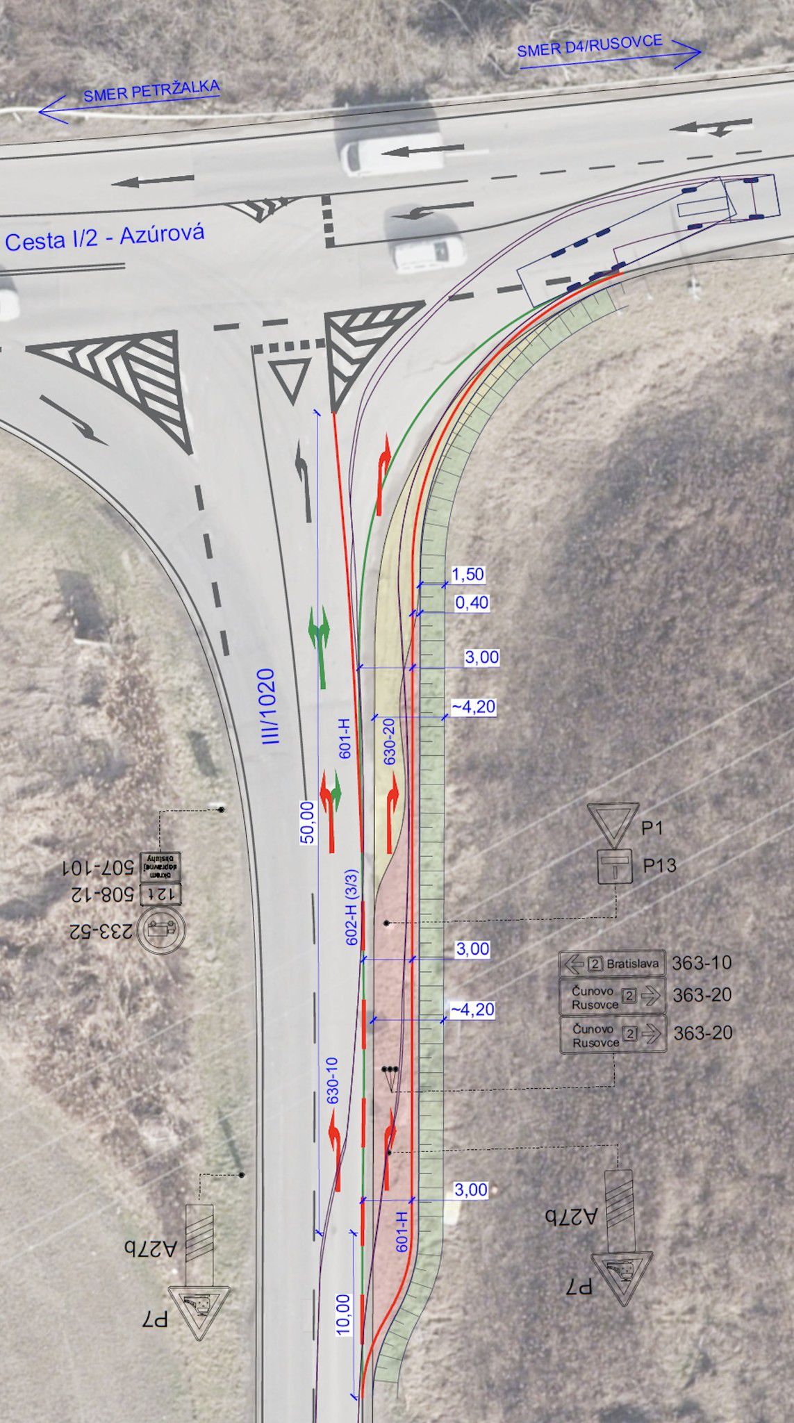 Hlavné mesto bude môcť rozšíriť cestu z bratislavských Jaroviec a vybudovať nový 50-metrový odbočovací pruh na diaľnicu D4.Po spustení úseku D4 pri Jarovciach stratili obyvatelia priame napojenie na D2 a doprava sa začala zahusťovať najmä v T-čkovej križovatke ciest III/1020 a I/2 (Azúrová). Úzky profil cesty spôsobuje, že autá odbočujúce doprava na D4 blokujú tie, ktoré chcú ísť doľava do Petržalky – a opačne. Roky to nebolo možné riešiť, kvôli tomu, že pozemky pod plánovaným odbočením boli v súkromnom vlastníctve.
