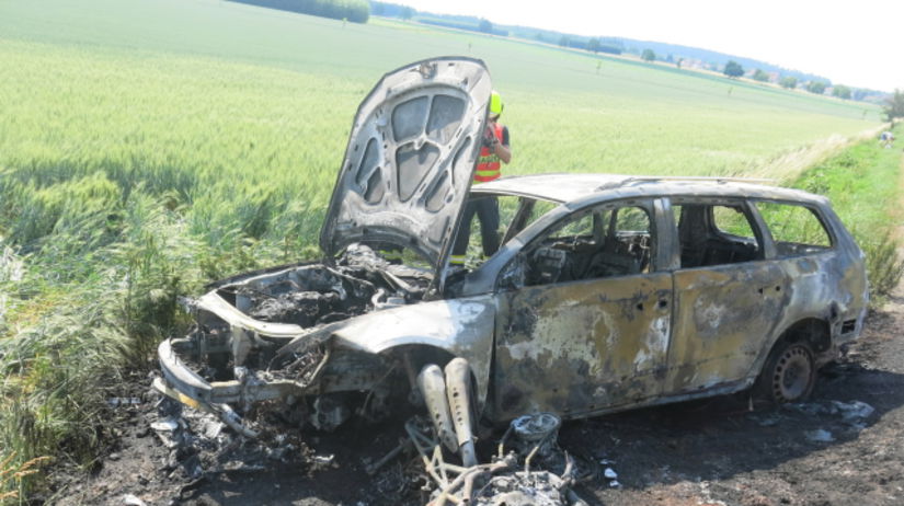 Jeho odstredivá sila odmrštila, ale motorka pokračovala v priamom smere. Dostala sa až pod osobné auto a roztrhla sa jej nádrž. Benzín na ceste sa vznietil a okamžite aj osobné auto. To skončilo v poli pri ceste, z celého ľavého boku šľahali plamene.
