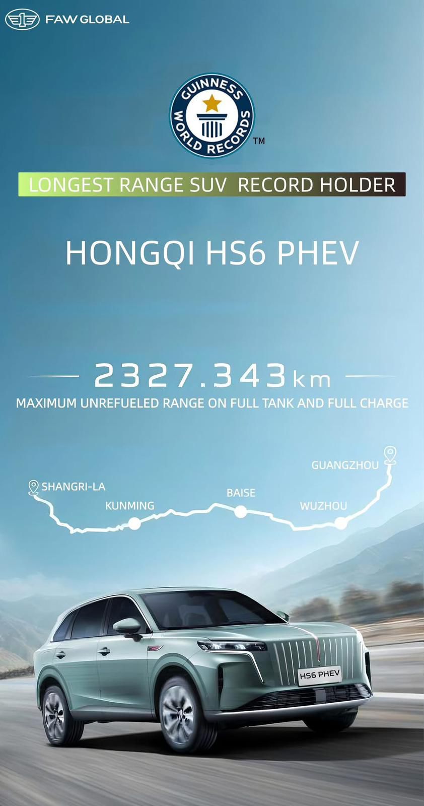 Rekordný pokus totiž odštartoval v čínskom meste Šangri-La v nadmorskej výške okolo 3 200 metrov a trasa viedla cez Kunming, Baise a Wuzhou až do Guangzhou na úrovni mora. Cesta tak kombinovala horské úseky, mestskú prevádzku aj rýchlostné komunikácie. Ide však o trasu s veľkou prevahou klesaní, počas ktorých plug-in hybrid dobíjal svoju batériu. Aj samotná tlačová správa priznáva, že klesajúci profil cesty výsledku „mierne“ pomohol, no počas jazdy nebolo povolené žiadne tankovanie či nabíjanie a vozidlo muselo pod dohľadom komisárov splniť štandardné pravidlá Guinnessovej knihy rekordov.